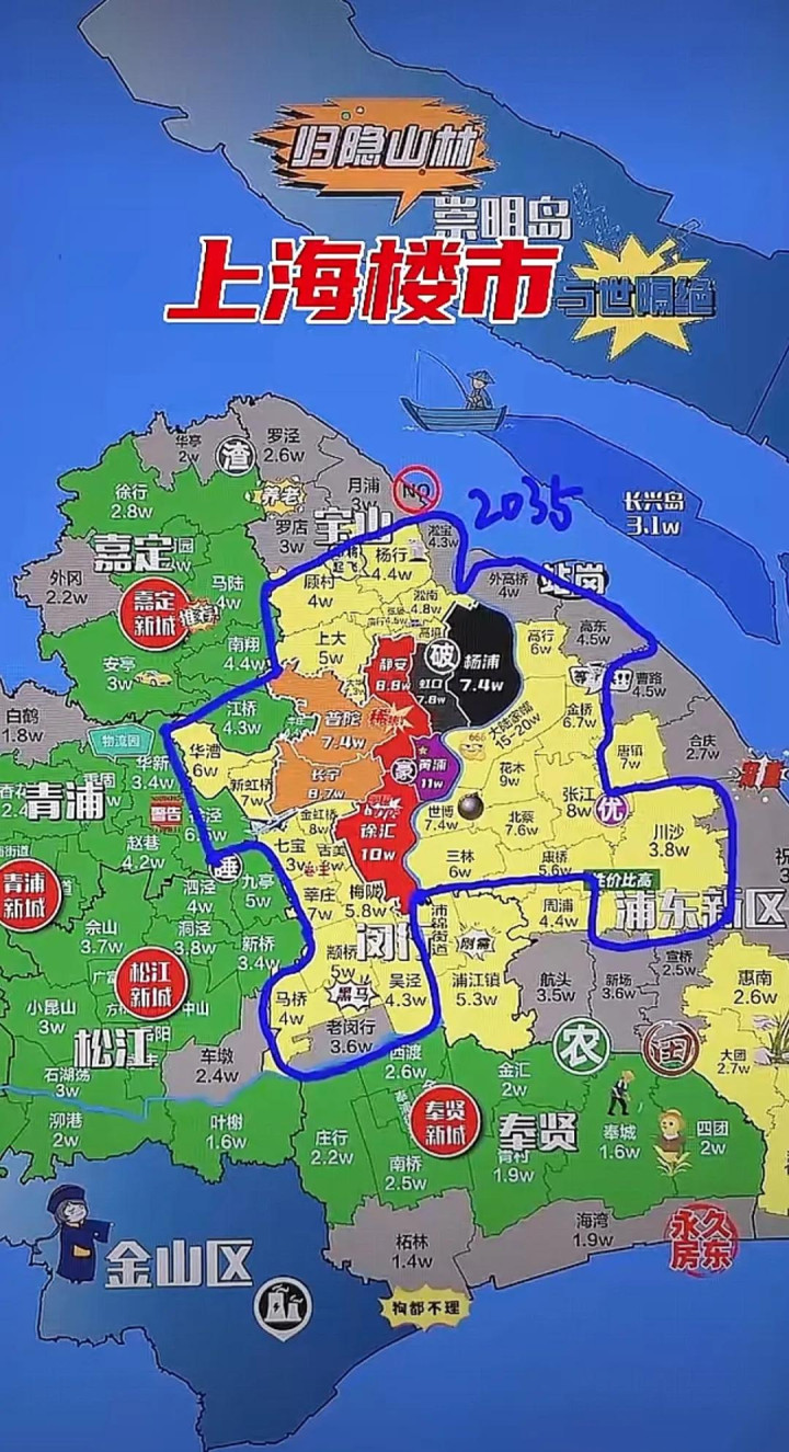 这里有个规律,没在上海工作、生活过的人,如果直接来上海就买房,他们很容易买在“雷区”即金山区、崇明区和长兴岛。至于为何如此呢?因为上海整体房价比较贵,而这三个地方也是在上海,所以他们“图实惠和名声”,第一选择就是买房价看起来极低的上海境内的房子,这三个地方一分析比较就能被找到。