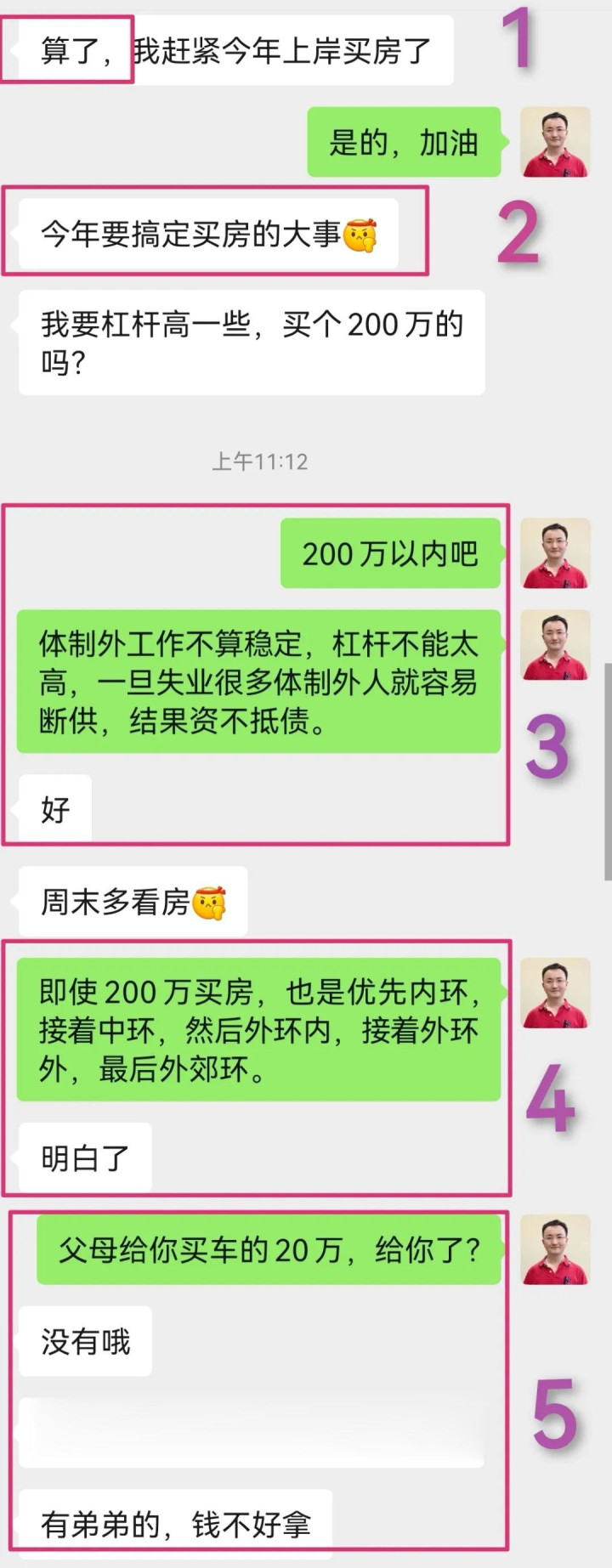 我们还是以具体案例结尾,这是我的一个职场女徒弟今早的提问。我用紫色的阿拉伯数字,来阐述并给知识点排序。