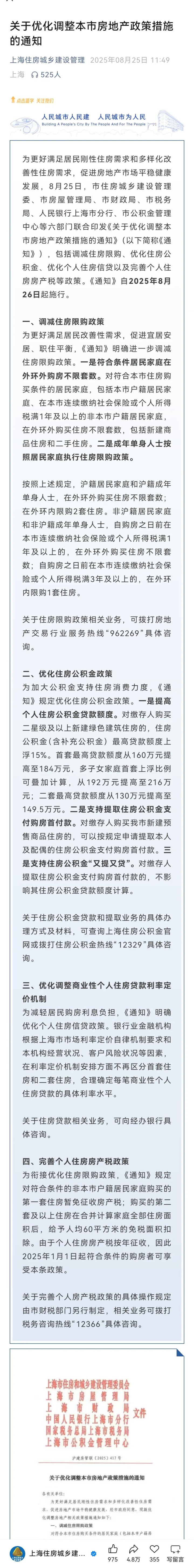 原文在这里《关于优化调整本市房地产政策措施的通知》,也可看下图。